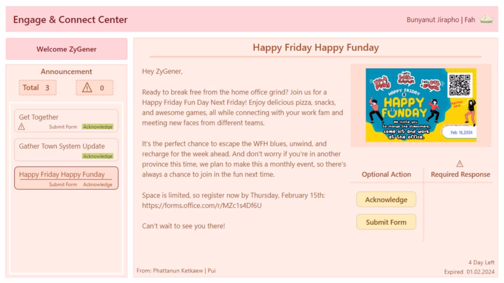 สำหรับ HR หรือฝ่ายบริหาร ที่ต้องการประกาศข่าวสารอย่างเป็นทางการ เช่น แจ้งกิจกรรม สวัสดิการใหม่ ประกาศจากผู้บริหาร
