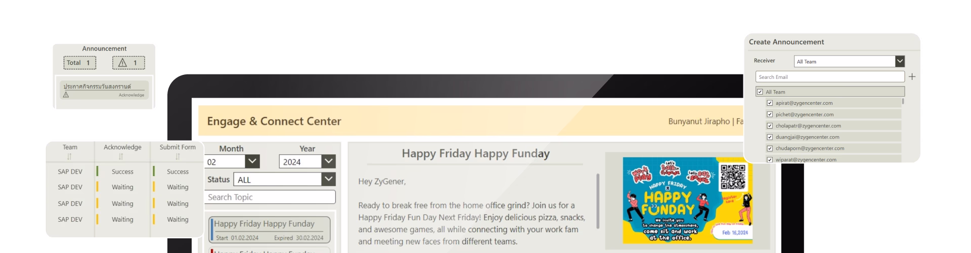 - ใช้งานสะดวกทั้งบน Desktop และ Mobile พร้อมแสดงสถานะว่าใคร “รับทราบแล้ว”