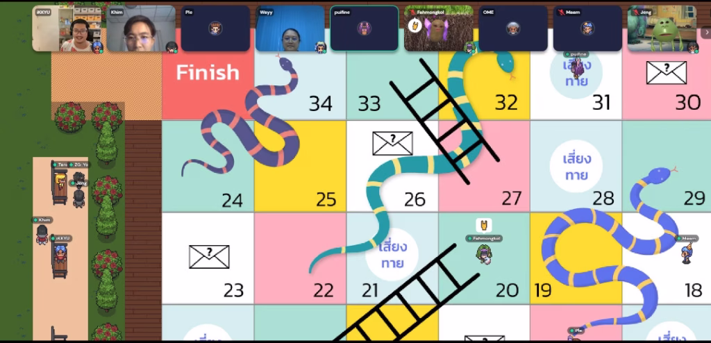 ภาพการเล่นเกมบนโลกเสมือน Gather Town (2D)